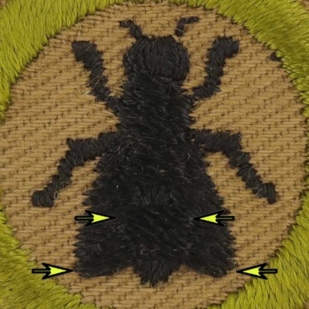 - Design: Wings UNDER abdomen, center line in wings, one 70 degree bend in back legs