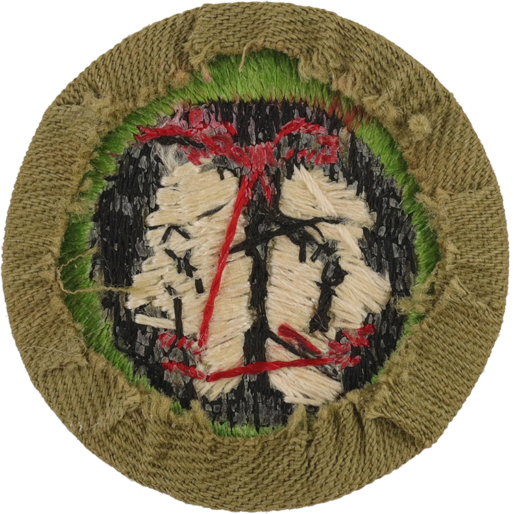 - Tan Lightweight Cloth with Cotton Lockstitch Embroidery and Plain Back 1939 - 42