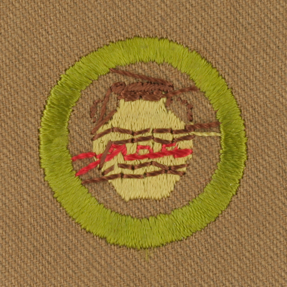 - Tan Lightweight Cloth with Cotton Lockstitch Embroidery and Plain Back 1939 - 42