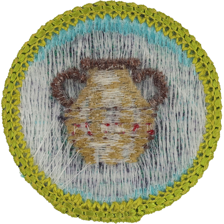 - Tan Lightweight Cloth with Cotton Lockstitch Embroidery and Plain Back 1939 - 42