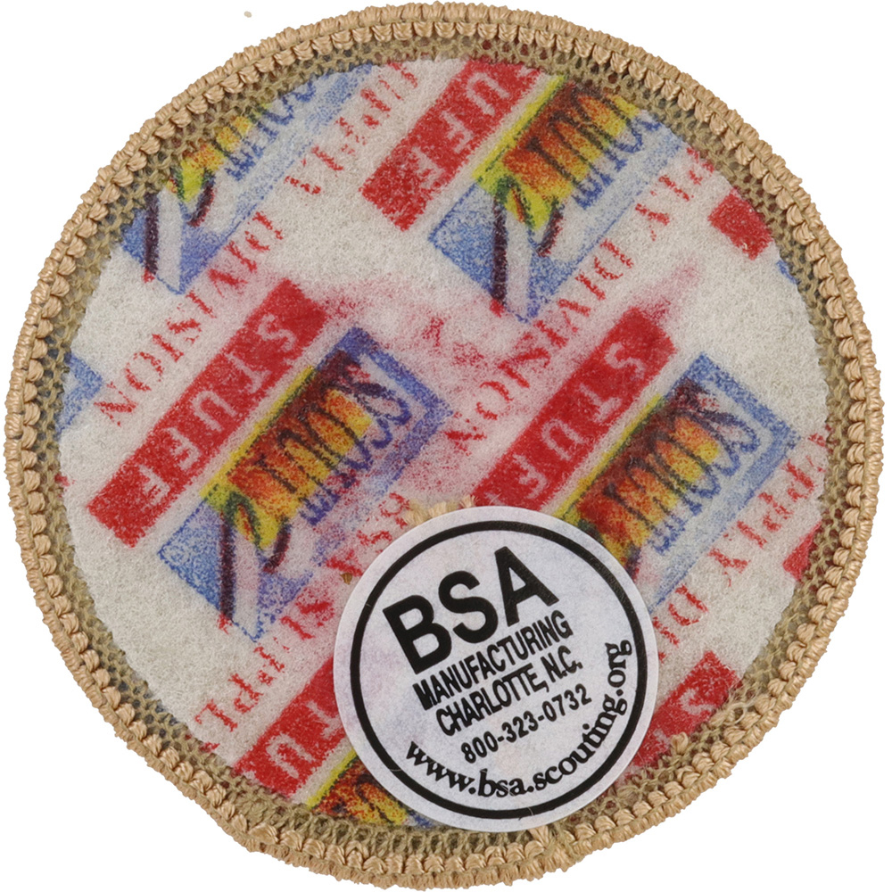 - Minor variation: Pellon reinforced molded plastic with Scout Stuff image back