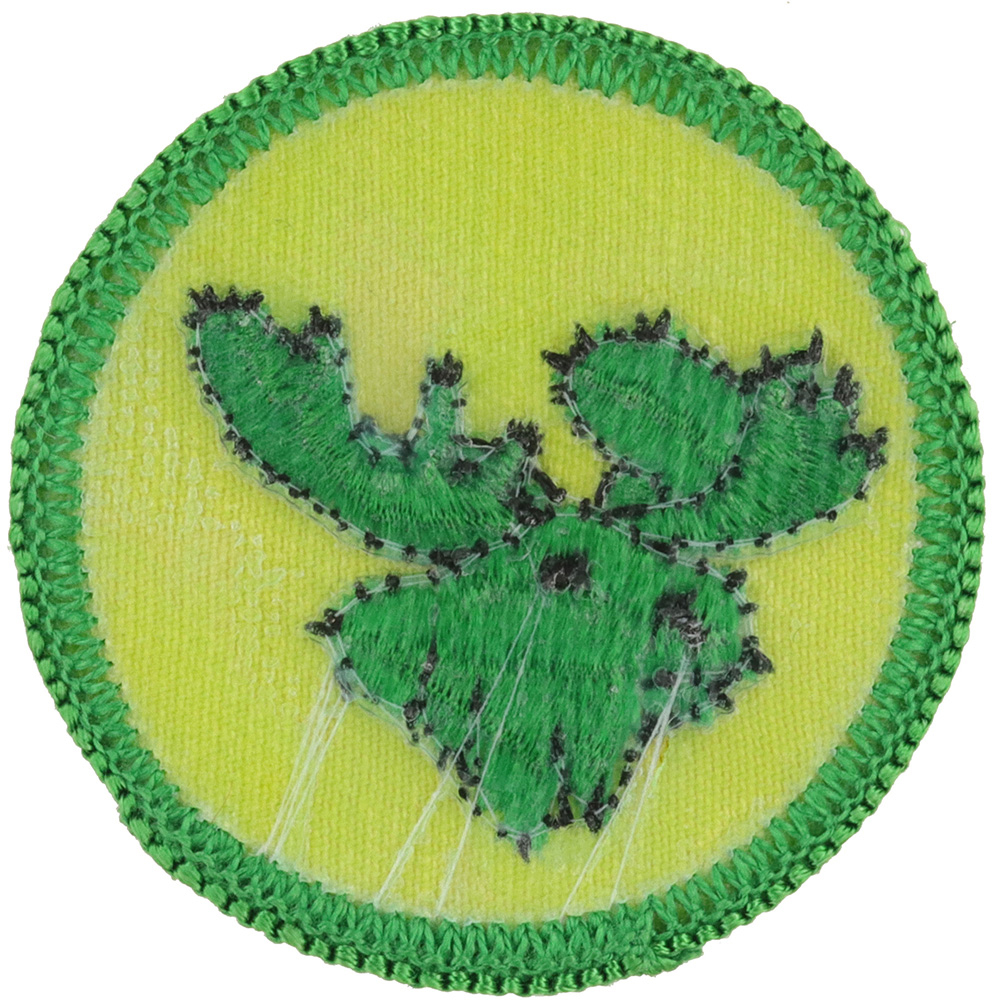 - Minor variation: Green , flat merrowed border, matching lock stitch