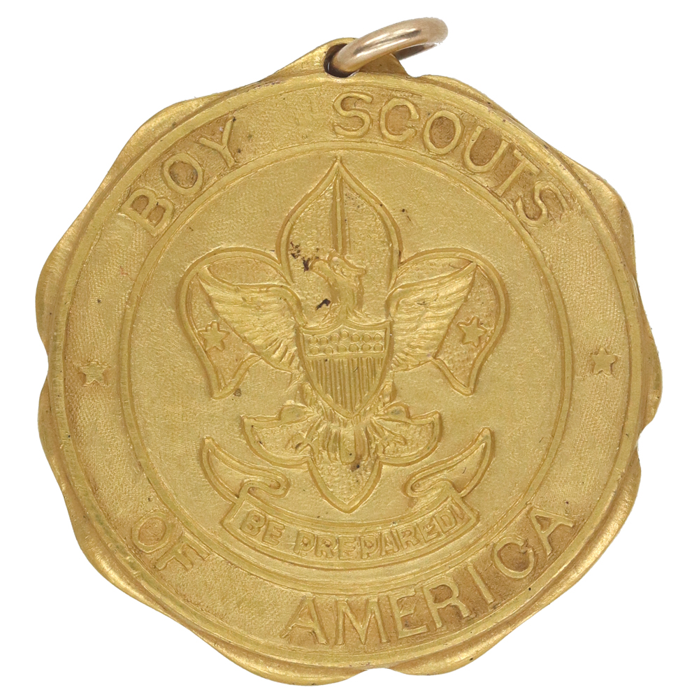 - Heavy grosgrain silk ribbon, First Class emblem, polished gilded medal fob, gold chain and clasp