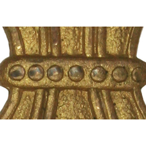- Distinctive line of Pearls or Dots embossed across the horizontal ring holding the three parts of the trefoil together