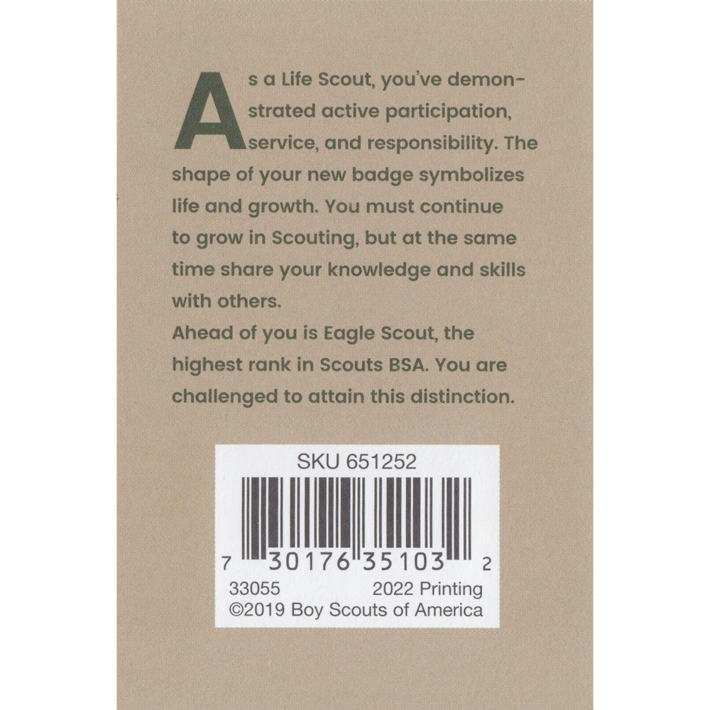 - Printing: 4 color, green Second Class badge