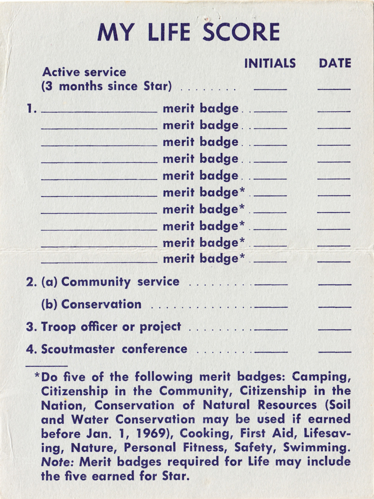 Item Name: Life Scout Score Board 1970