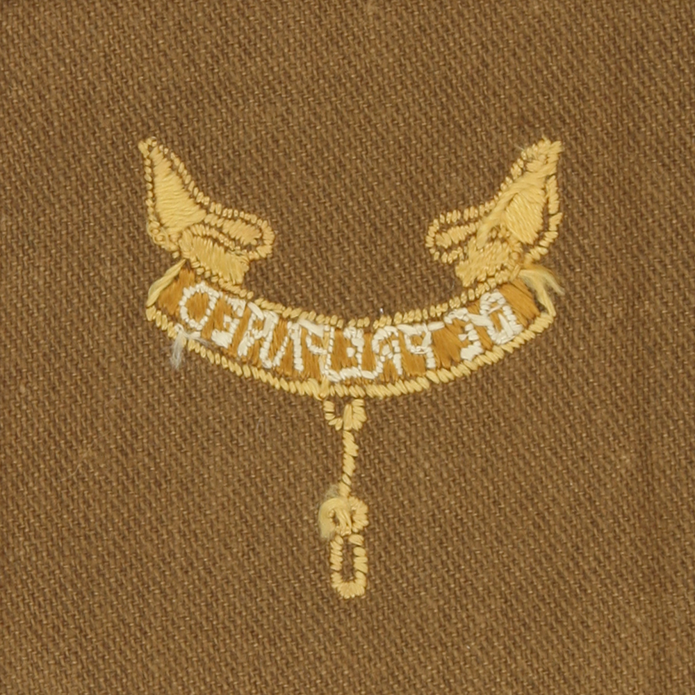 - Tan Lightweight Cloth with Cotton Lockstitch Embroidery and Plain Back 1939 - 42