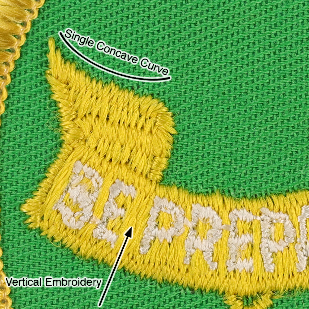 - Scroll Left: Tip points up, single concave curve scroll top, vertical embroidery