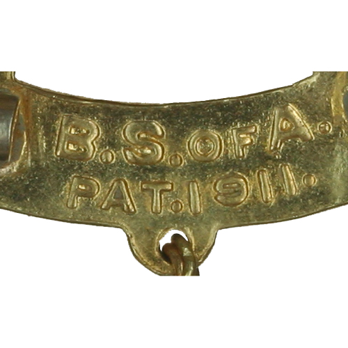 - Hallmark: Sans serif font, "B.S. OF A. PAT. 1911"