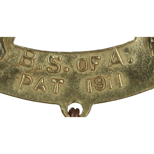 - Hallmark: Sans serif font, "B.S. OF A. PAT. 1911"