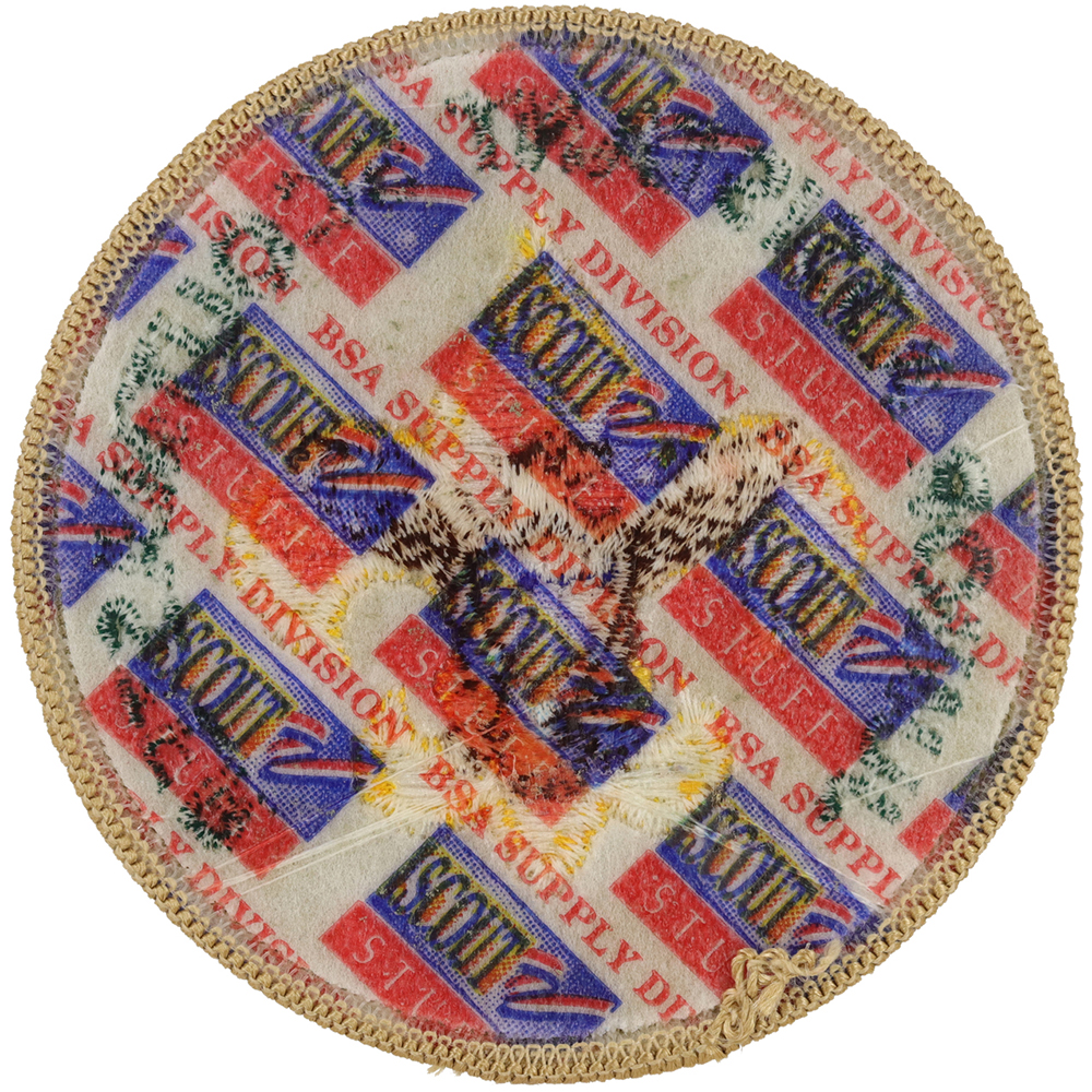 - Fine left twill, 50mm Gold Tenderfoot with brown eagle, stars in shield star shape, 5 tail feathers